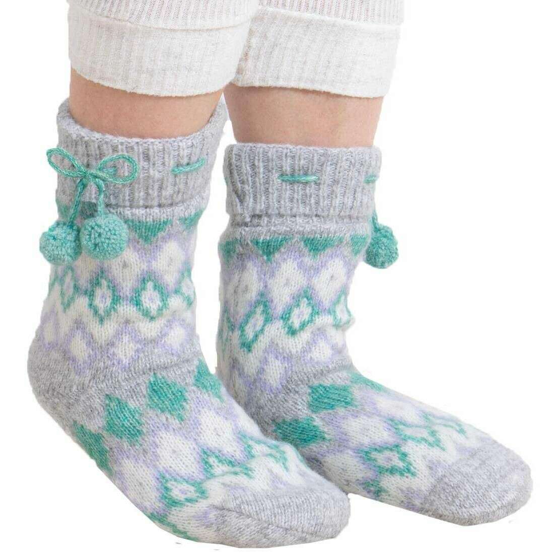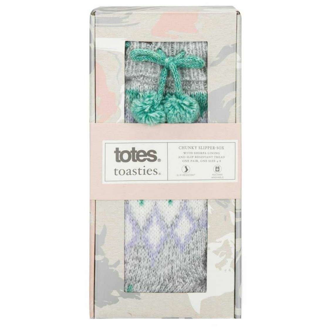 Totes Toasties フェアアイル シェニール スリッパ ソックス - グレー/グリーン/パープル