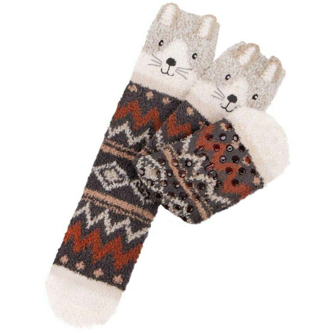 トートストーストティースーティスーパーソフトスリッパソックス - キャットブラウン