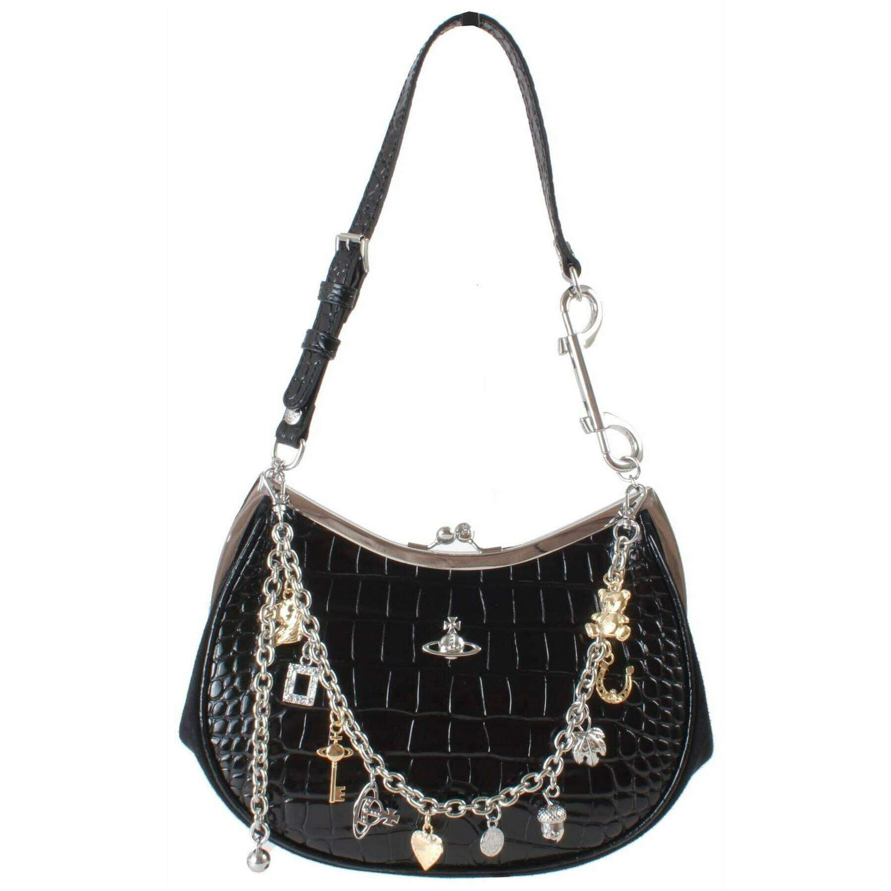 Vivienne Westwood エンボス クロコ チャーム フレーム パース - ブラック