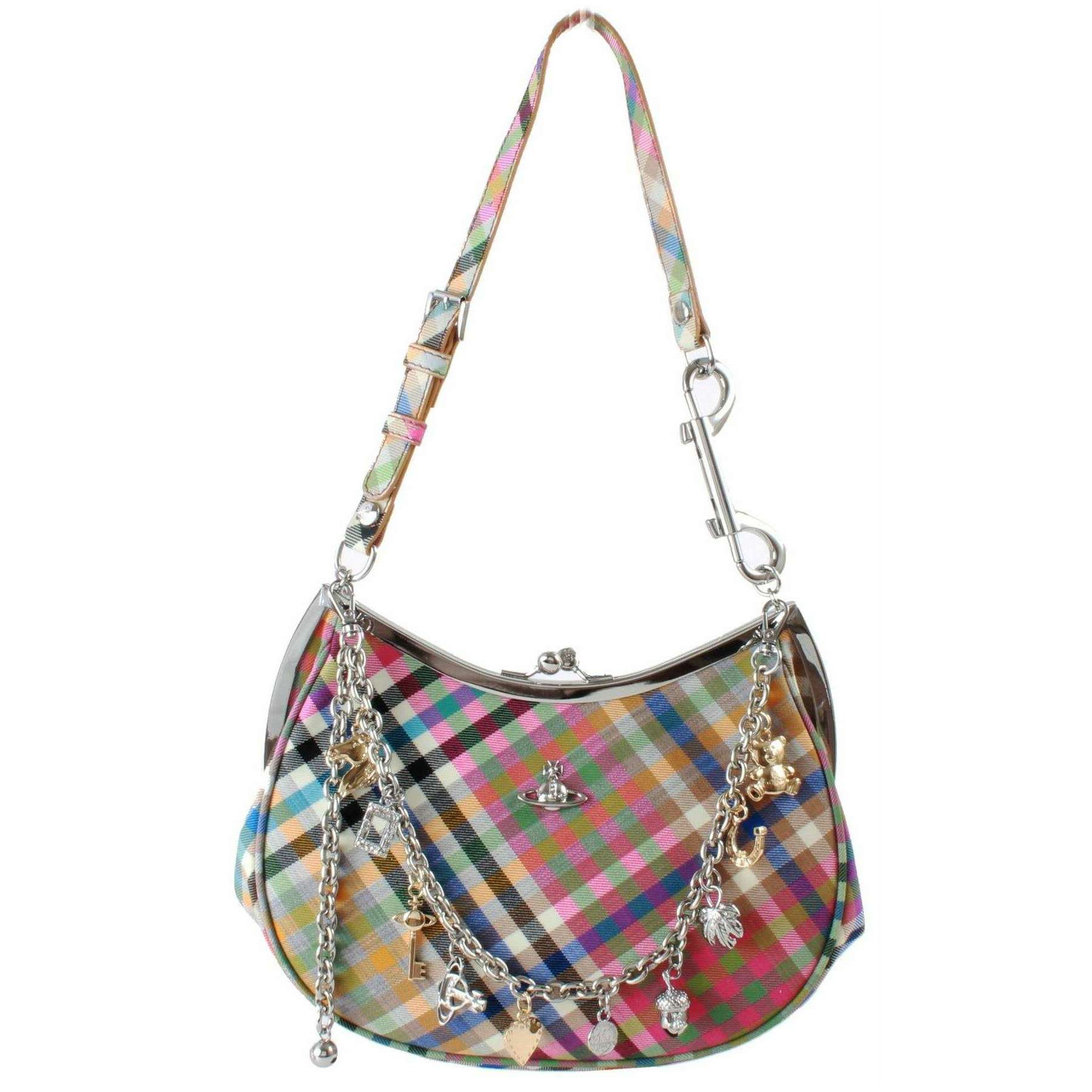 Vivienne Westwood ヘザーチェック チャーム フレーム パース - ベージュ/ピンク/ブルー