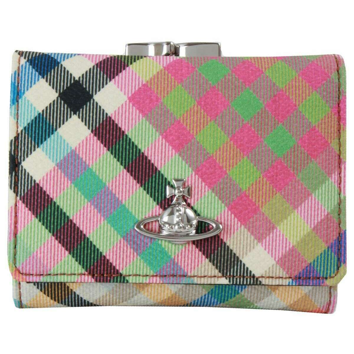 Vivienne Westwood ヘザー チェック柄 スモール フレーム パース - ベージュ/ピンク/ブルー