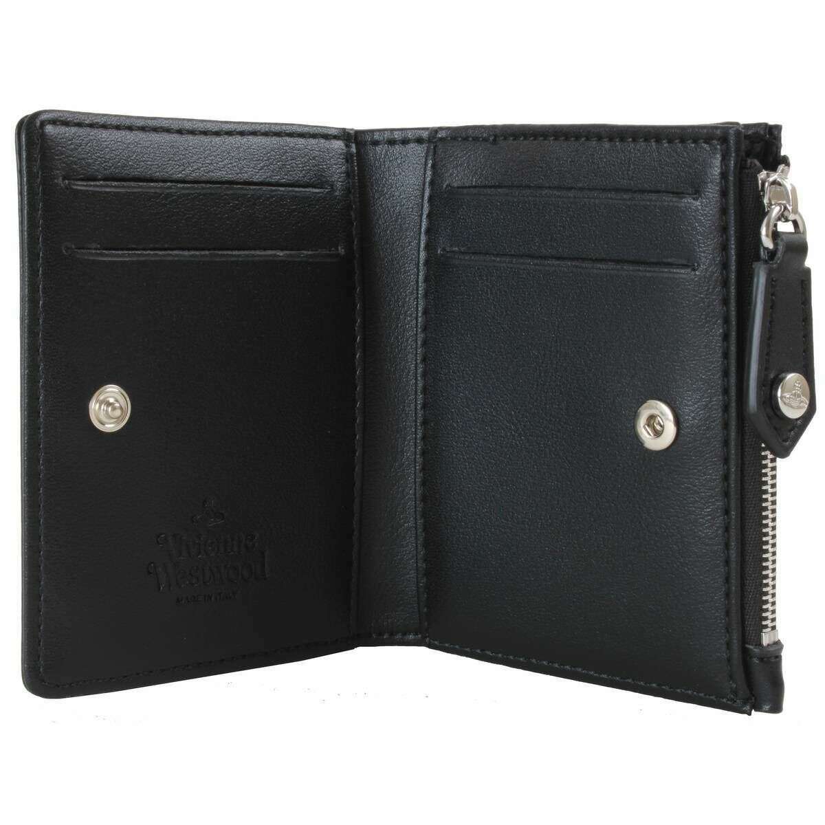 この女性用スリム フラップ カード ホルダーはポリエステル 100% 製で、黒色が特徴で、ブランドの製品です。 Vivienne Westwood. サイズは9cm(高さ)×10.5cm(幅)×2.5cm(奥行き)です。すべての財布はヴィヴィアン・ウエストウッドのパッケージに入っています。の Vivienne Westwood スリム フラップ カード ホルダー - ブラックは、かさばるデザインを減らし、ポケットや小さめのバッグにぴったり収まるけれど、スタイルを崩さない、魅力的な普段使いの財布になります。カードセクションはシンプルなスナップボタンで開閉でき、4つのカードスロットがあり、反対側にはファスナー付きのコインコンパートメントがあります。象徴的なオーブが前面に誇らしげに鎮座し、完璧なパートナーを与えてくれます。
