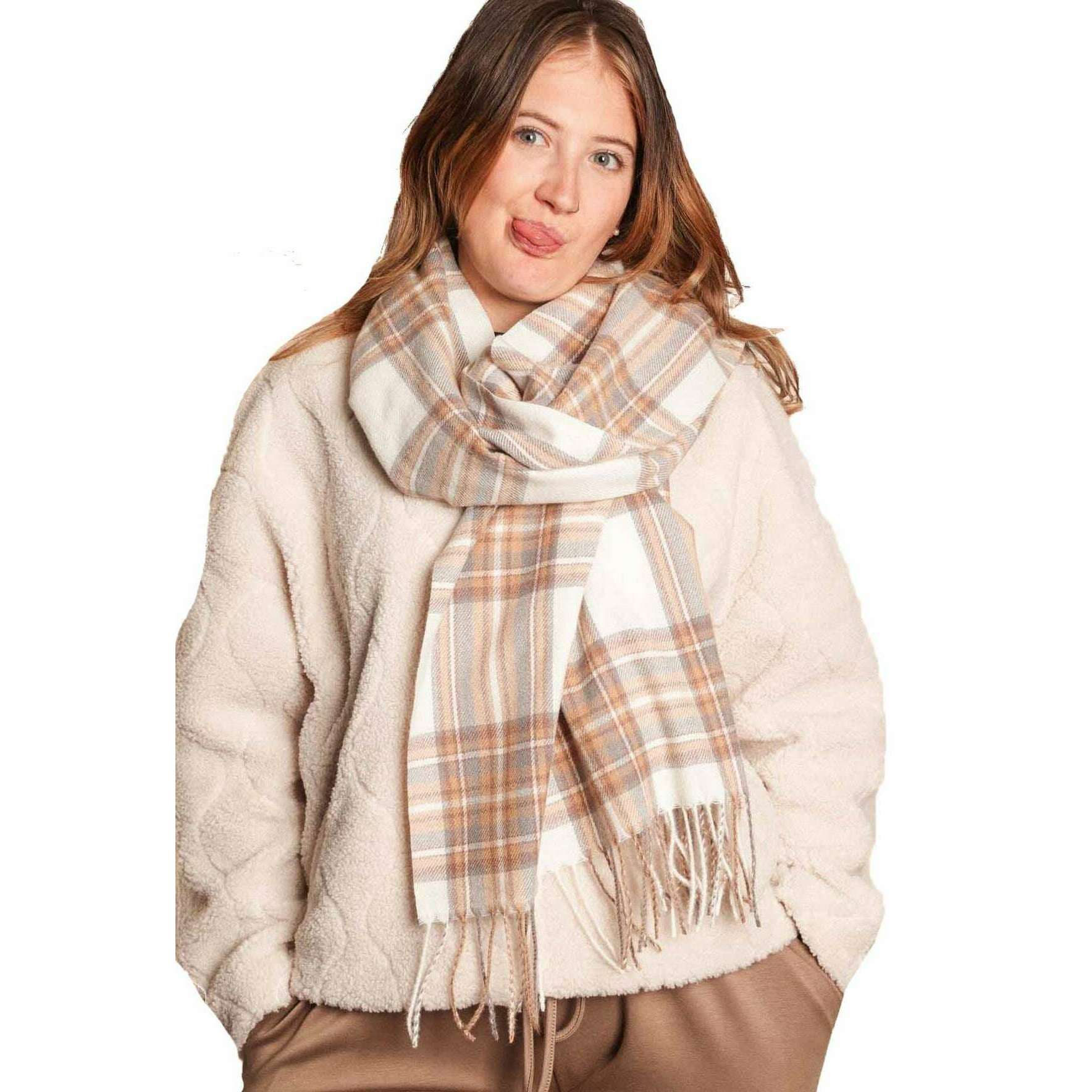 Zelly チェック ウィンター ウェイト スカーフ - ベージュ/ブラウン