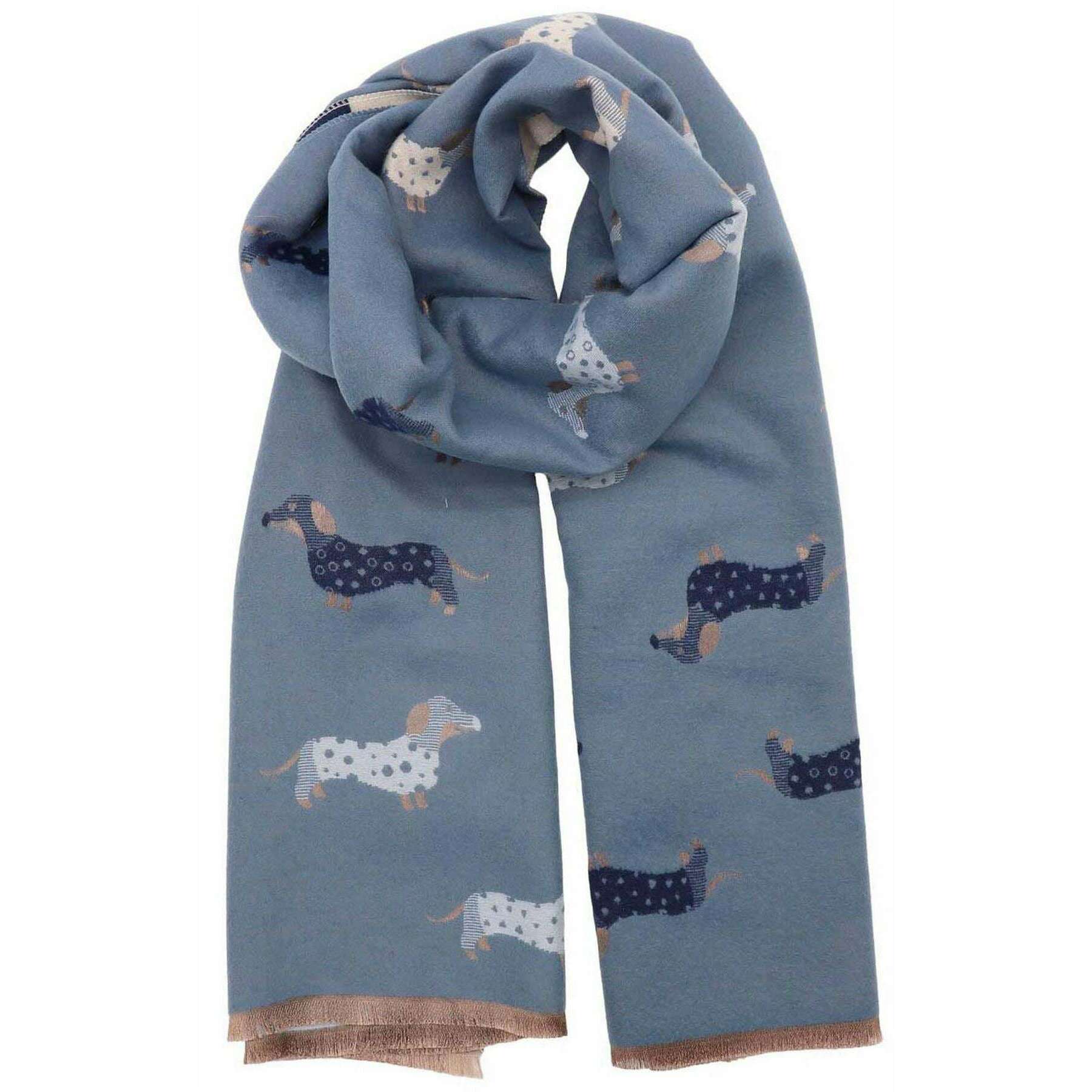 Zelly Dachshund ウィンター ウェイト プリント スカーフ - ブルー
