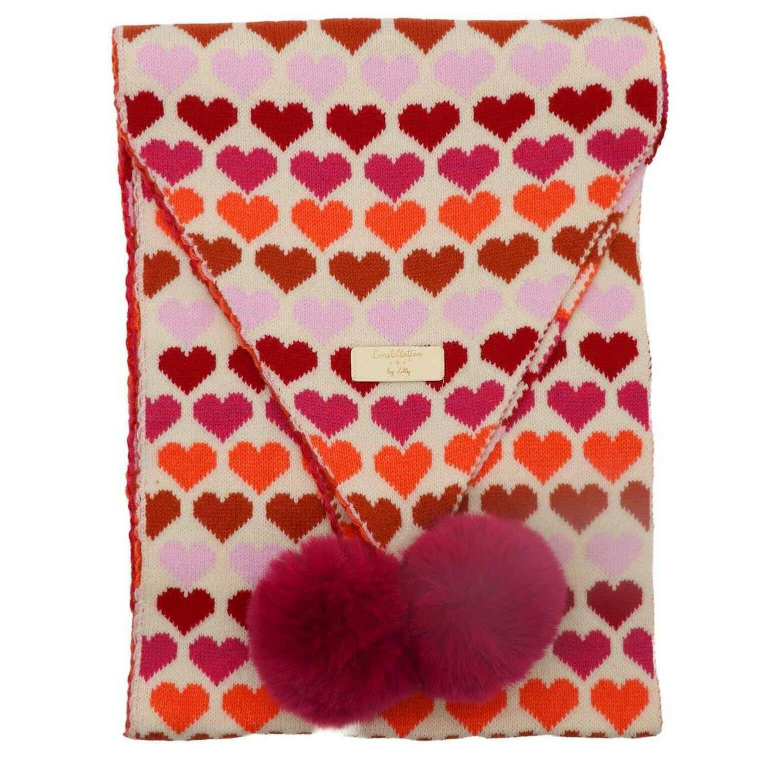 ゼリー ハート ポンポン スカーフ - ピンク/レッド
