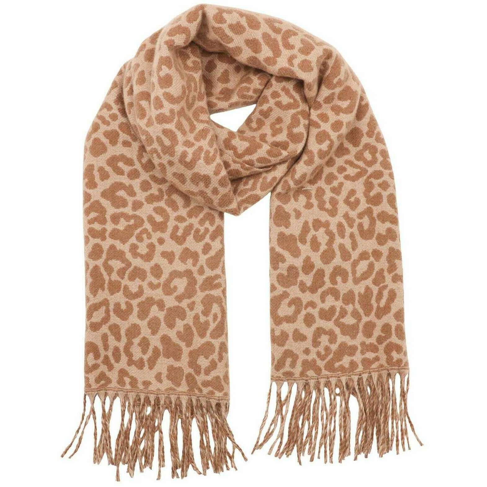 Zelly レオパード ライン ウィンター ウェイト プリント スカーフ - ベージュ